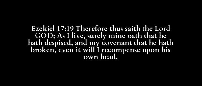 Ezekiel 17:19 Therefore thus saith the Lord GOD; As I live, surely mine oath that he hath despised, and my covenant that he hath broken, even it will I recompense upon his own head.