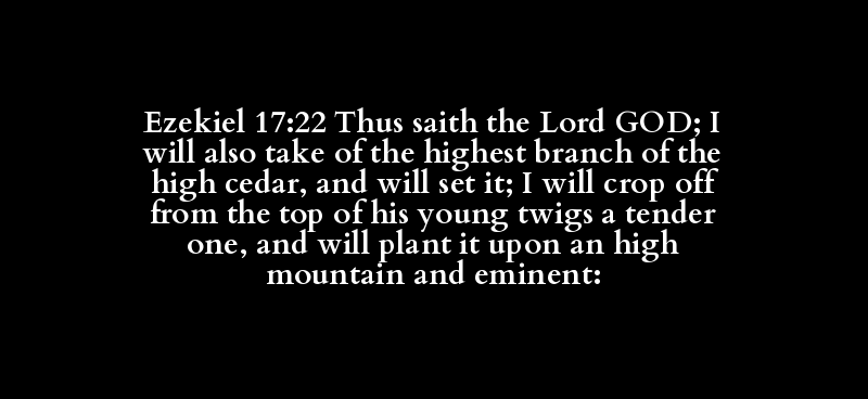 Ezekiel 17:22 Thus saith the Lord GOD; I will also take of the highest branch of the high cedar, and will set it; I will crop off from the top of his young twigs a tender one, and will plant it upon an high mountain and eminent: