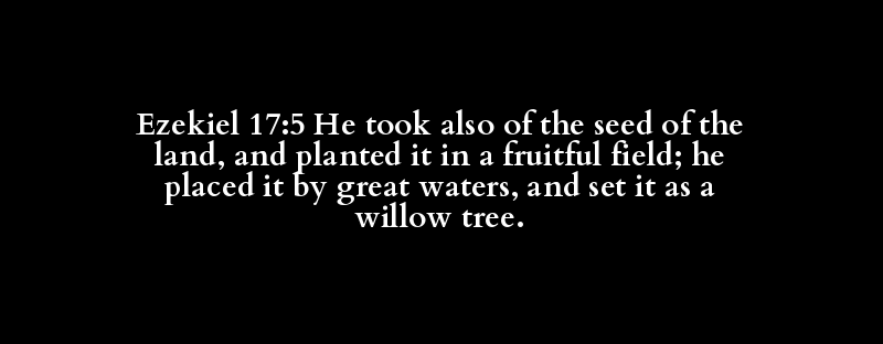 Ezekiel 17:5 He took also of the seed of the land, and planted it in a fruitful field; he placed it by great waters, and set it as a willow tree.