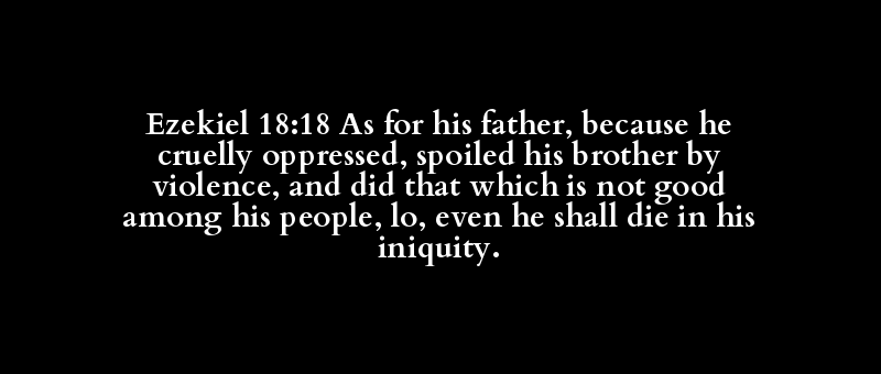 Ezekiel 18:18 As for his father, because he cruelly oppressed, spoiled his brother by violence, and did that which is not good among his people, lo, even he shall die in his iniquity.