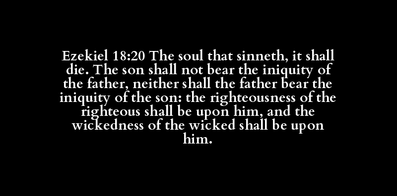 Ezekiel 18:20 The soul that sinneth, it shall die. The son shall not bear the iniquity of the father, neither shall the father bear the iniquity of the son: the righteousness of the righteous shall be upon him, and the wickedness of the wicked shall be upon him.