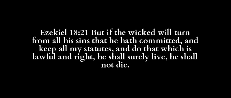 Ezekiel 18:21 But if the wicked will turn from all his sins that he hath committed, and keep all my statutes, and do that which is lawful and right, he shall surely live, he shall not die.