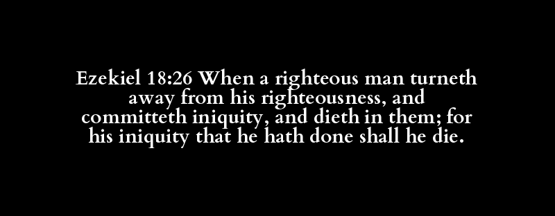 Ezekiel 18:26 When a righteous man turneth away from his righteousness, and committeth iniquity, and dieth in them; for his iniquity that he hath done shall he die.
