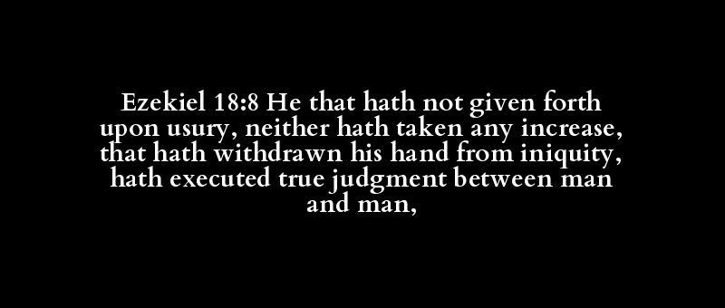 Ezekiel 18:8 He that hath not given forth upon usury, neither hath taken any increase, that hath withdrawn his hand from iniquity, hath executed true judgment between man and man,