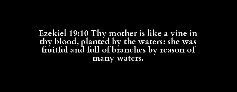 Ezekiel 19:10 Thy mother is like a vine in thy blood, planted by the waters: she was fruitful and full of branches by reason of many waters.