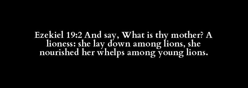 Ezekiel 19:2 And say, What is thy mother? A lioness: she lay down among lions, she nourished her whelps among young lions.