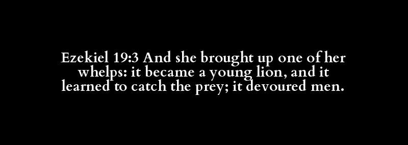 Ezekiel 19:3 And she brought up one of her whelps: it became a young lion, and it learned to catch the prey; it devoured men.