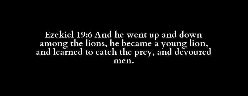 Ezekiel 19:6 And he went up and down among the lions, he became a young lion, and learned to catch the prey, and devoured men.