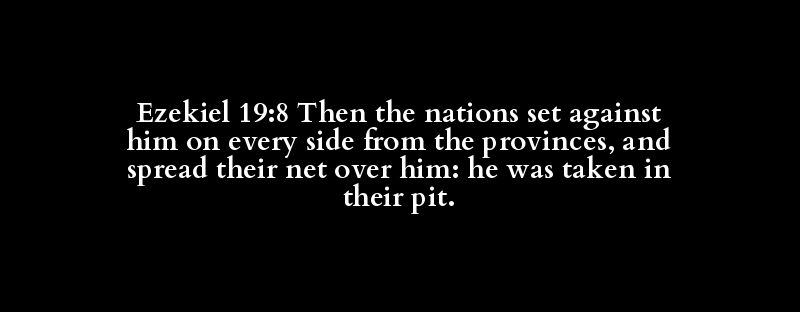 Ezekiel 19:8 Then the nations set against him on every side from the provinces, and spread their net over him: he was taken in their pit.