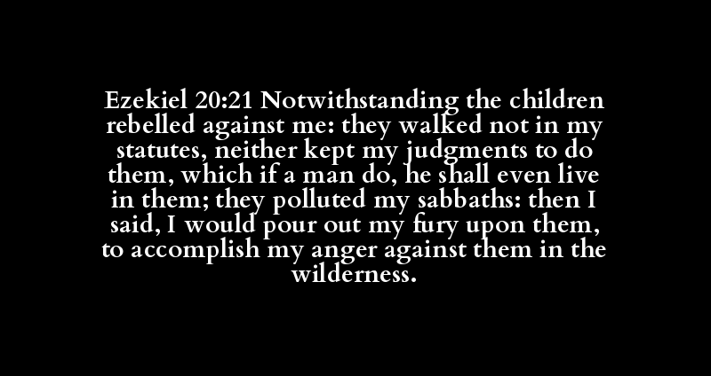 Ezekiel 20:21 Notwithstanding the children rebelled against me: they walked not in my statutes, neither kept my judgments to do them, which if a man do, he shall even live in them; they polluted my sabbaths: then I said, I would pour out my fury upon them, to accomplish my anger against them in the wilderness.