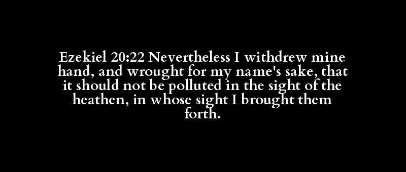 Ezekiel 20:22 Nevertheless I withdrew mine hand, and wrought for my name's sake, that it should not be polluted in the sight of the heathen, in whose sight I brought them forth.