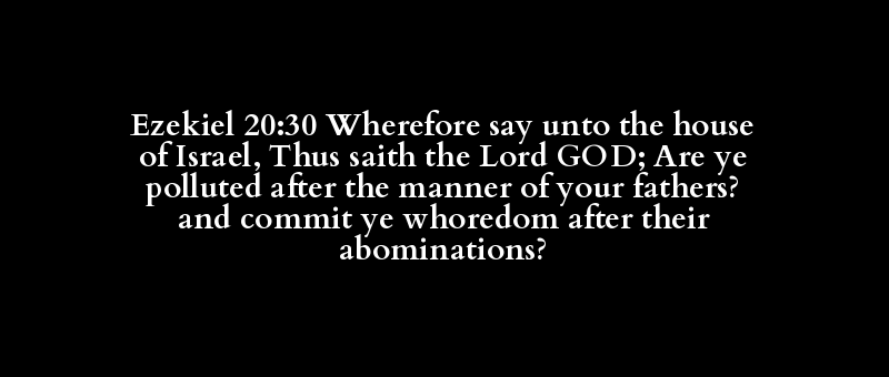 Ezekiel 20:30 Wherefore say unto the house of Israel, Thus saith the Lord GOD; Are ye polluted after the manner of your fathers? and commit ye whoredom after their abominations?