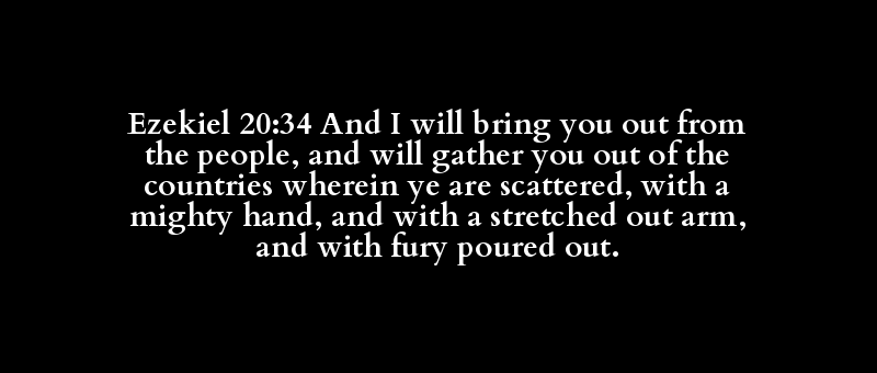 Ezekiel 20:34 And I will bring you out from the people, and will gather you out of the countries wherein ye are scattered, with a mighty hand, and with a stretched out arm, and with fury poured out.