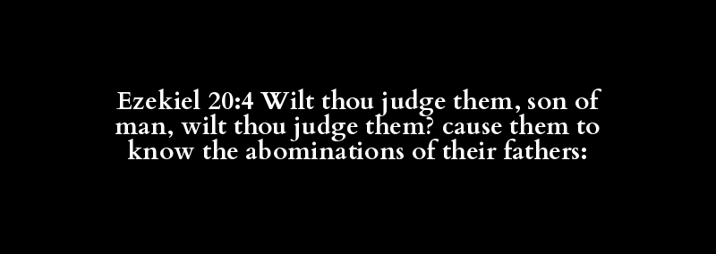 Ezekiel 20:4 Wilt thou judge them, son of man, wilt thou judge them? cause them to know the abominations of their fathers: