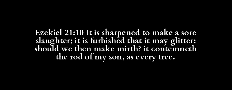Ezekiel 21:10 It is sharpened to make a sore slaughter; it is furbished that it may glitter: should we then make mirth? it contemneth the rod of my son, as every tree.
