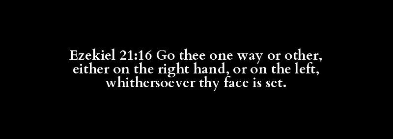 Ezekiel 21:16 Go thee one way or other, either on the right hand, or on the left, whithersoever thy face is set.