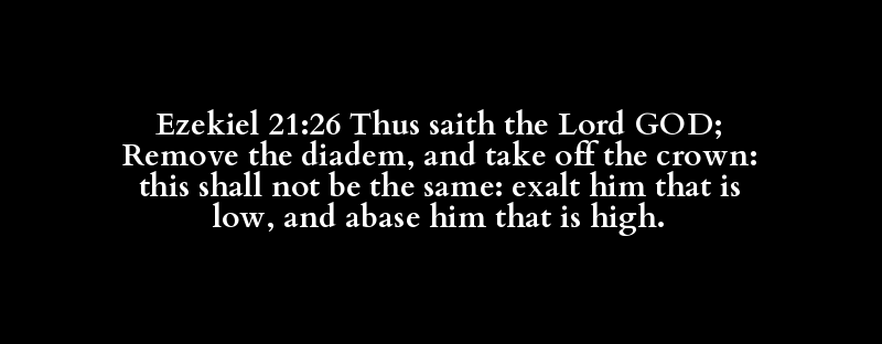 Ezekiel 21:26 Thus saith the Lord GOD; Remove the diadem, and take off the crown: this shall not be the same: exalt him that is low, and abase him that is high.