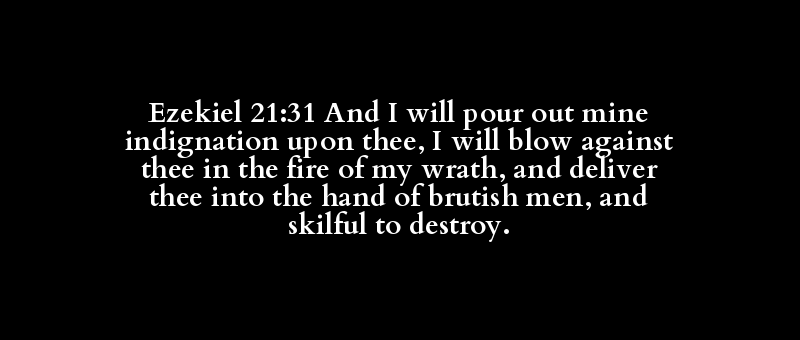 Ezekiel 21:31 And I will pour out mine indignation upon thee, I will blow against thee in the fire of my wrath, and deliver thee into the hand of brutish men, and skilful to destroy.