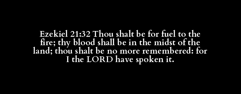 Ezekiel 21:32 Thou shalt be for fuel to the fire; thy blood shall be in the midst of the land; thou shalt be no more remembered: for I the LORD have spoken it.