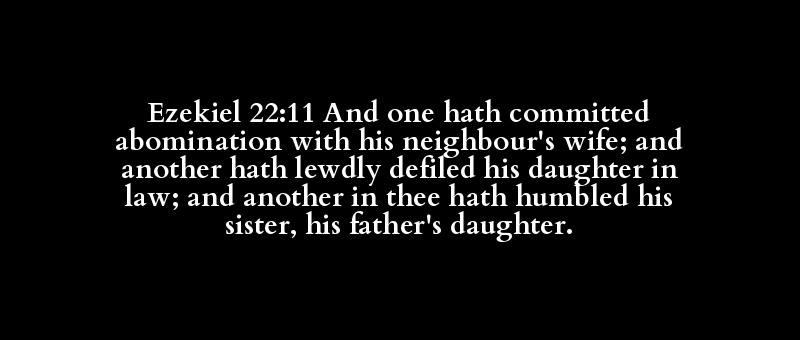 Ezekiel 22:11 And one hath committed abomination with his neighbour's wife; and another hath lewdly defiled his daughter in law; and another in thee hath humbled his sister, his father's daughter.