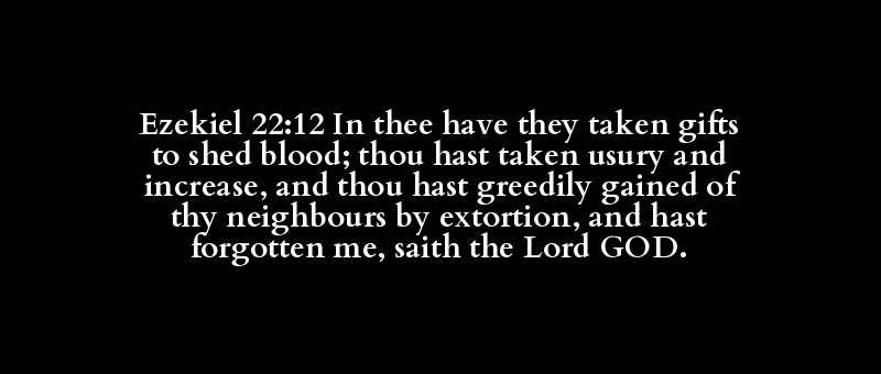 Ezekiel 22:12 In thee have they taken gifts to shed blood; thou hast taken usury and increase, and thou hast greedily gained of thy neighbours by extortion, and hast forgotten me, saith the Lord GOD.