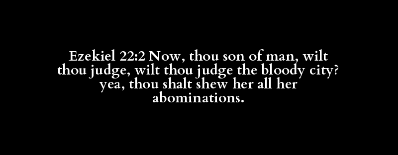 Ezekiel 22:2 Now, thou son of man, wilt thou judge, wilt thou judge the bloody city? yea, thou shalt shew her all her abominations.