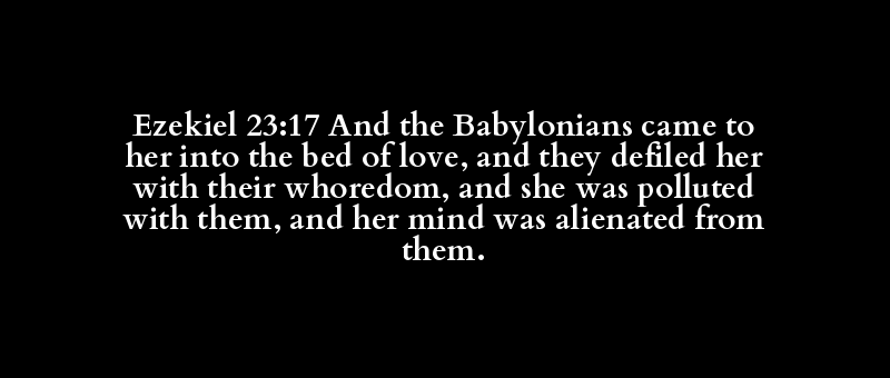 Ezekiel 23:17 And the Babylonians came to her into the bed of love, and they defiled her with their whoredom, and she was polluted with them, and her mind was alienated from them.