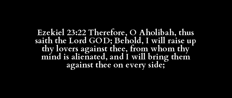Ezekiel 23:22 Therefore, O Aholibah, thus saith the Lord GOD; Behold, I will raise up thy lovers against thee, from whom thy mind is alienated, and I will bring them against thee on every side;