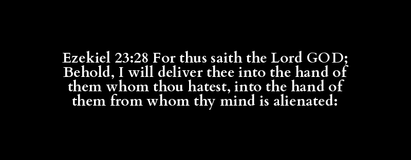 Ezekiel 23:28 For thus saith the Lord GOD; Behold, I will deliver thee into the hand of them whom thou hatest, into the hand of them from whom thy mind is alienated: