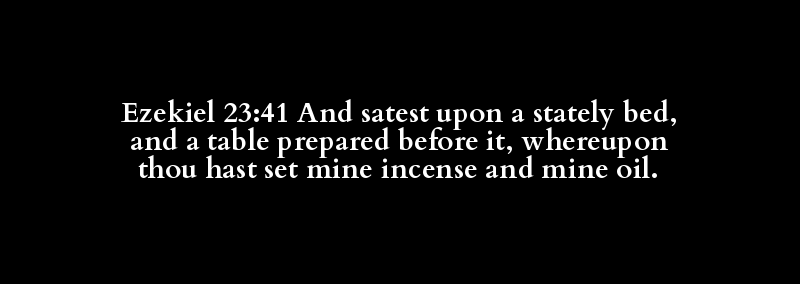 Ezekiel 23:41 And satest upon a stately bed, and a table prepared before it, whereupon thou hast set mine incense and mine oil.