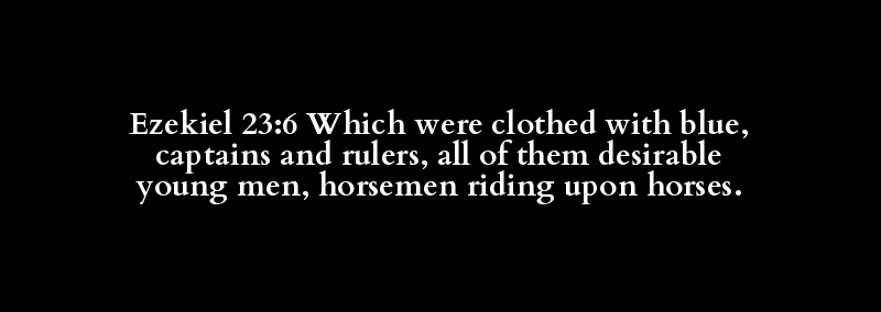 Ezekiel 23:6 Which were clothed with blue, captains and rulers, all of them desirable young men, horsemen riding upon horses.