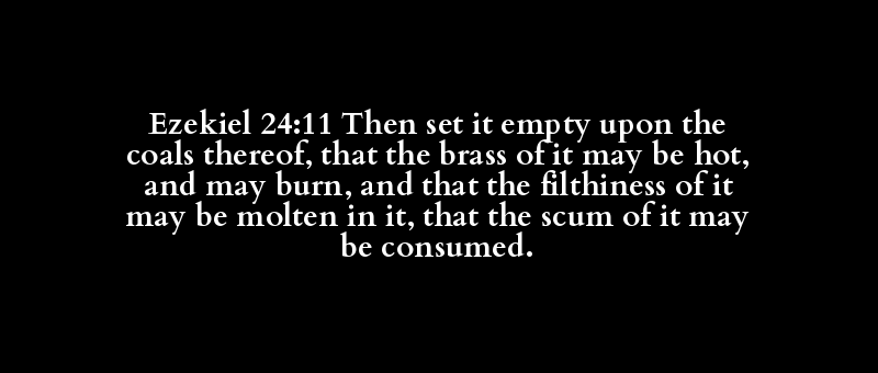 Ezekiel 24:11 Then set it empty upon the coals thereof, that the brass of it may be hot, and may burn, and that the filthiness of it may be molten in it, that the scum of it may be consumed.