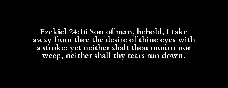 Ezekiel 24:16 Son of man, behold, I take away from thee the desire of thine eyes with a stroke: yet neither shalt thou mourn nor weep, neither shall thy tears run down.