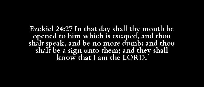 Ezekiel 24:27 In that day shall thy mouth be opened to him which is escaped, and thou shalt speak, and be no more dumb: and thou shalt be a sign unto them; and they shall know that I am the LORD.