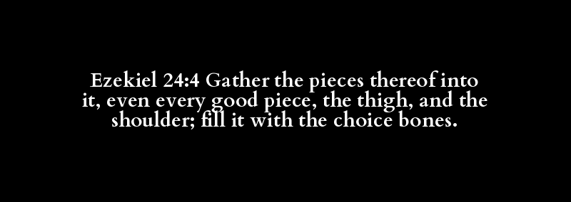 Ezekiel 24:4 Gather the pieces thereof into it, even every good piece, the thigh, and the shoulder; fill it with the choice bones.