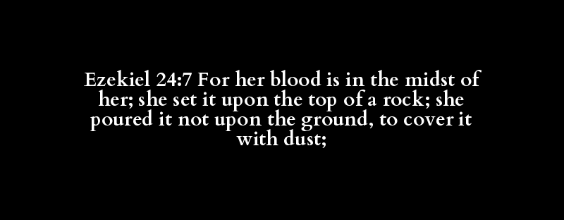 Ezekiel 24:7 For her blood is in the midst of her; she set it upon the top of a rock; she poured it not upon the ground, to cover it with dust;