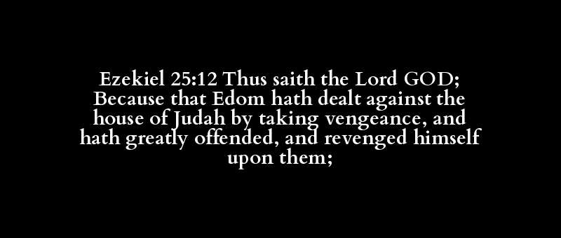 Ezekiel 25:12 Thus saith the Lord GOD; Because that Edom hath dealt against the house of Judah by taking vengeance, and hath greatly offended, and revenged himself upon them;