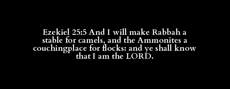 Ezekiel 25:5 And I will make Rabbah a stable for camels, and the Ammonites a couchingplace for flocks: and ye shall know that I am the LORD.