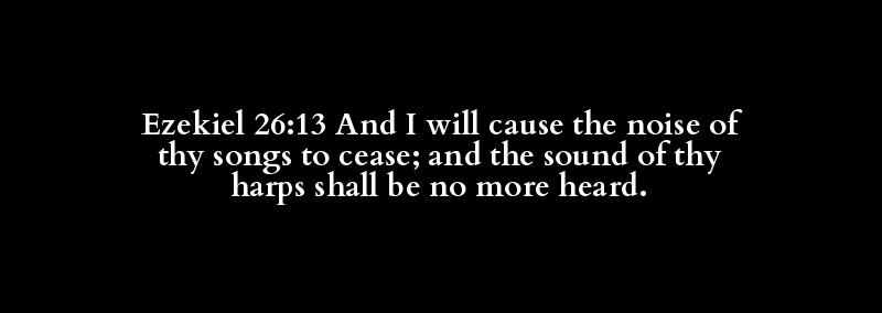 Ezekiel 26:13 And I will cause the noise of thy songs to cease; and the sound of thy harps shall be no more heard.