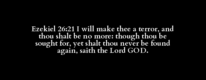 Ezekiel 26:21 I will make thee a terror, and thou shalt be no more: though thou be sought for, yet shalt thou never be found again, saith the Lord GOD.