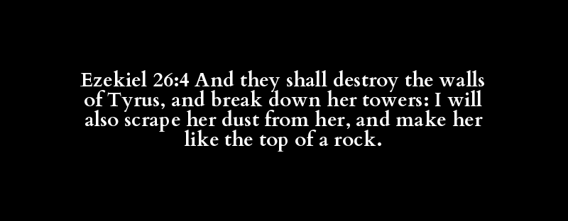 Ezekiel 26:4 And they shall destroy the walls of Tyrus, and break down her towers: I will also scrape her dust from her, and make her like the top of a rock.