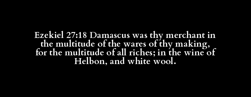 Ezekiel 27:18 Damascus was thy merchant in the multitude of the wares of thy making, for the multitude of all riches; in the wine of Helbon, and white wool.