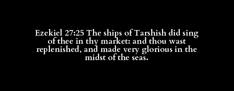 Ezekiel 27:25 The ships of Tarshish did sing of thee in thy market: and thou wast replenished, and made very glorious in the midst of the seas.