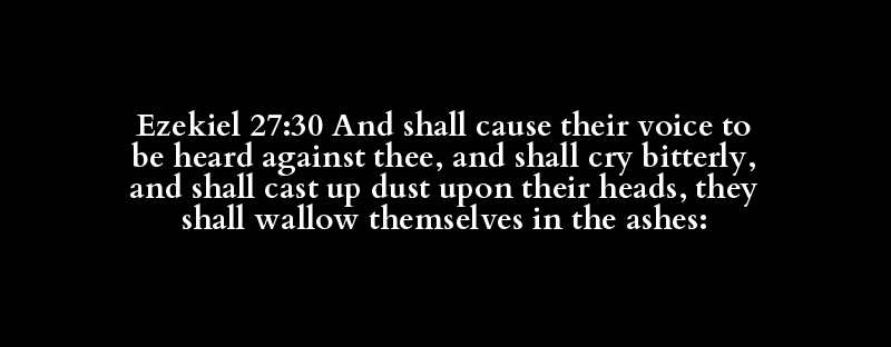 Ezekiel 27:30 And shall cause their voice to be heard against thee, and shall cry bitterly, and shall cast up dust upon their heads, they shall wallow themselves in the ashes: