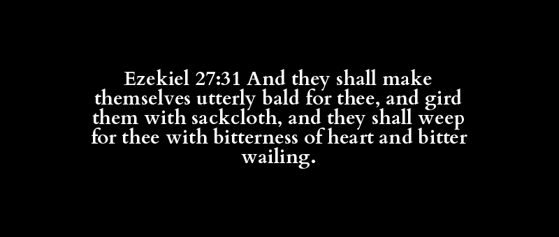 Ezekiel 27:31 And they shall make themselves utterly bald for thee, and gird them with sackcloth, and they shall weep for thee with bitterness of heart and bitter wailing.