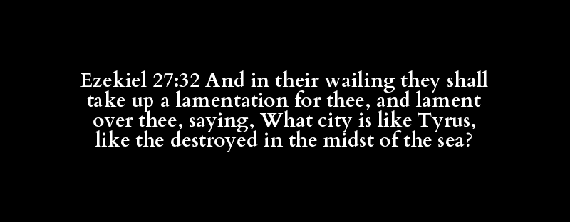 Ezekiel 27:32 And in their wailing they shall take up a lamentation for thee, and lament over thee, saying, What city is like Tyrus, like the destroyed in the midst of the sea?