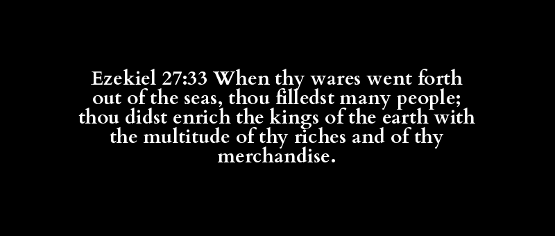 Ezekiel 27:33 When thy wares went forth out of the seas, thou filledst many people; thou didst enrich the kings of the earth with the multitude of thy riches and of thy merchandise.