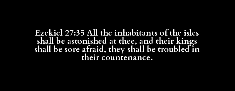 Ezekiel 27:35 All the inhabitants of the isles shall be astonished at thee, and their kings shall be sore afraid, they shall be troubled in their countenance.