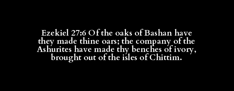 Ezekiel 27:6 Of the oaks of Bashan have they made thine oars; the company of the Ashurites have made thy benches of ivory, brought out of the isles of Chittim.