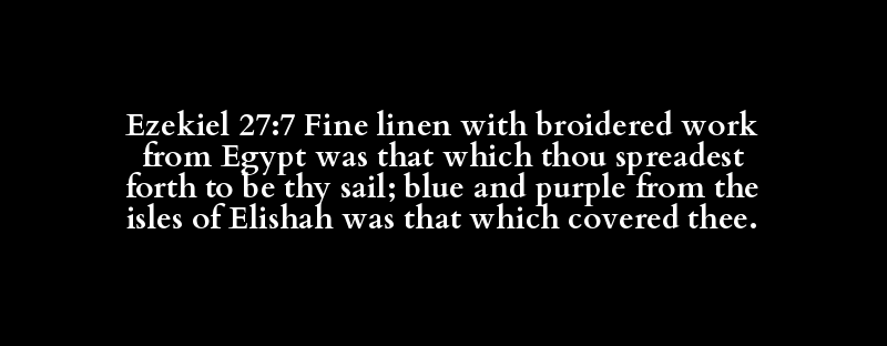 Ezekiel 27:7 Fine linen with broidered work from Egypt was that which thou spreadest forth to be thy sail; blue and purple from the isles of Elishah was that which covered thee.